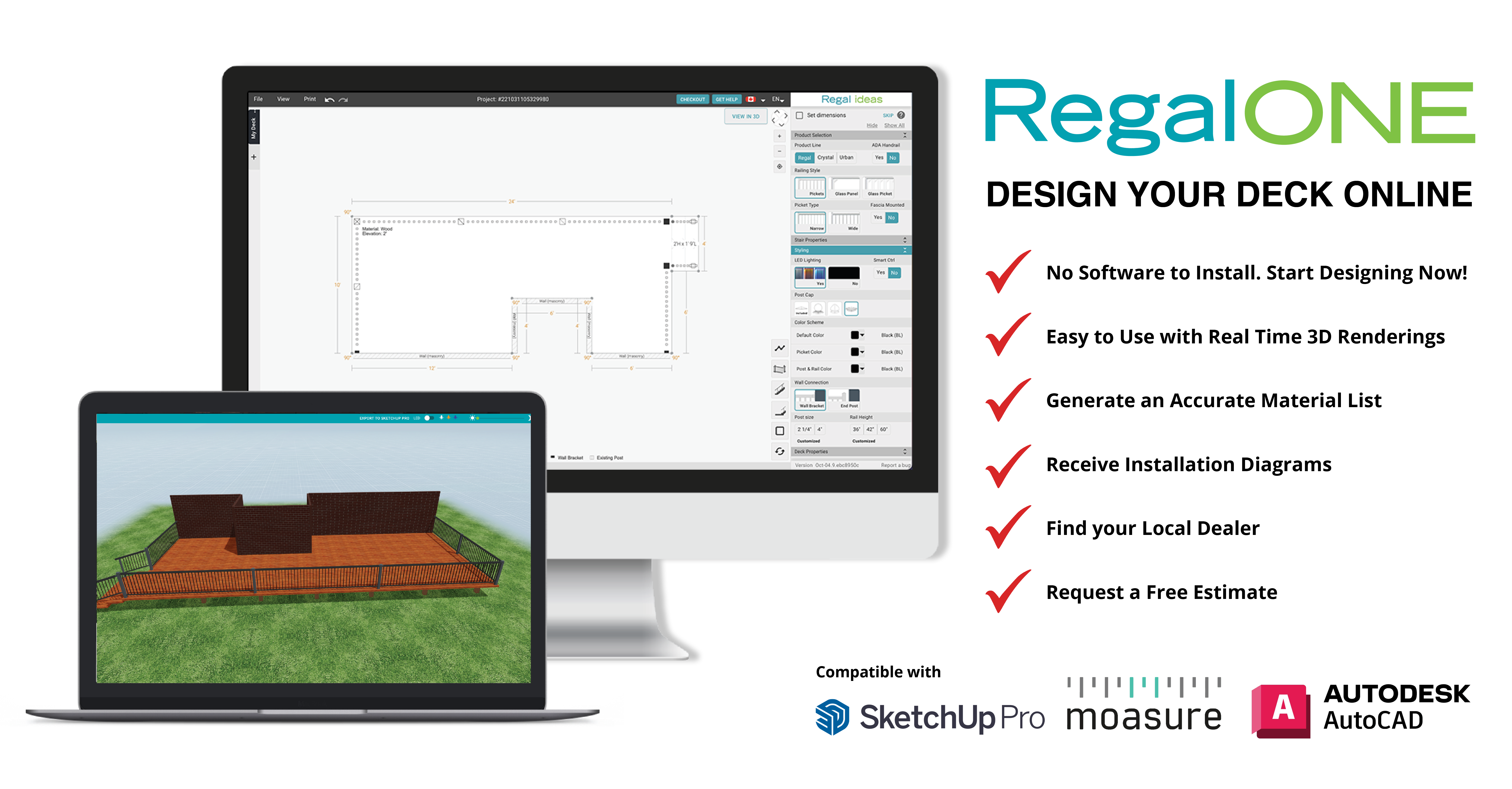 Use with SketchUp and AutoCad. Upload your design for a material list and quote.
